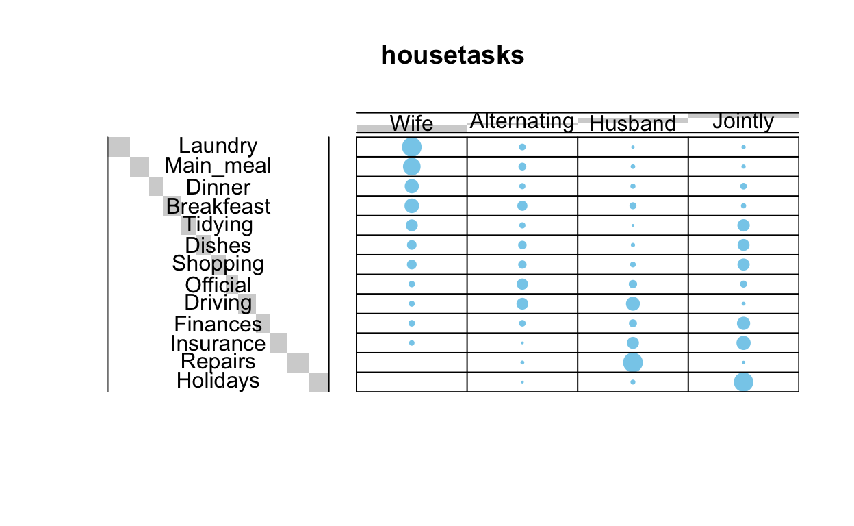 balloonplot(t(dt), main ="housetasks", xlab ="", ylab="",