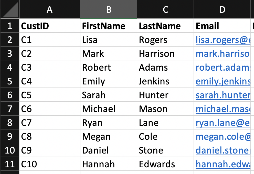 By default, the write_xlsx() function will automatically extract the column names from the data frame and use them as column names for the Excel worksheet as well. However, in certain situations we might want to skip the column names and only write the data entries to an Excel file. In these cases we can change the default setting using the col_names argument.